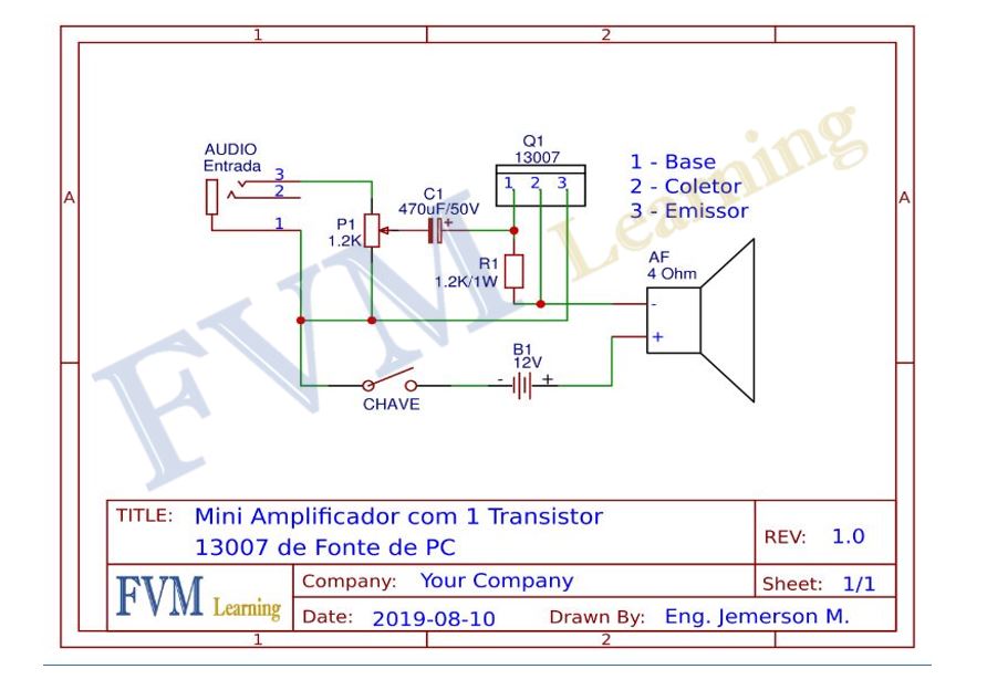 mini amplificador com 1 transistor 13007 de fonte de pc fvm learning amplificador de audio amplificador mini