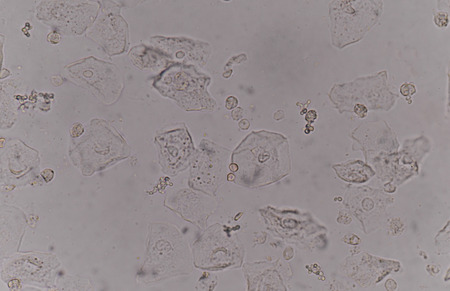 celulas epiteliales moderadas en muestras de orina con celulas de levadura y muestras reales de bacterias fotos retratos imagenes y fotografia de archivo libres de derecho image 76541451