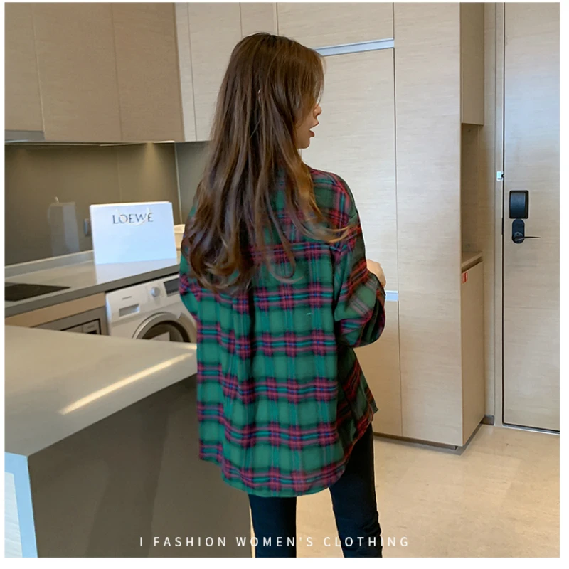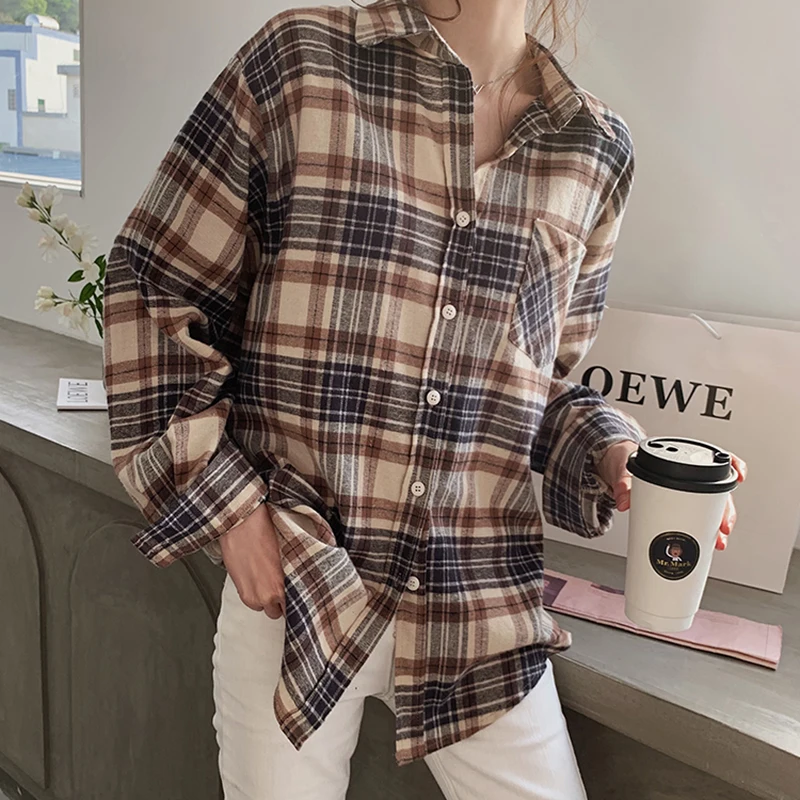 blusa con estampado a cuadros y manga larga para verano camisa holgada informal de estilo hip hop para mujer color azul albaricoque blusas y camisas aliexpress