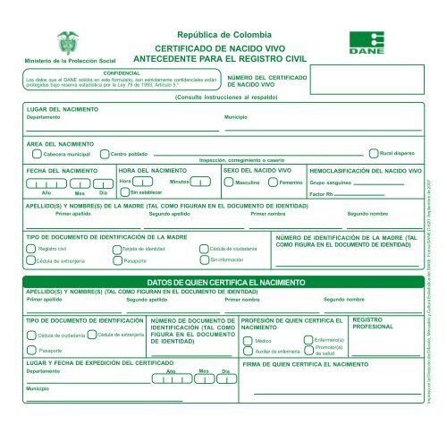 certificado nacido vivo colombia pdf fill online printable fillable blank pdffiller