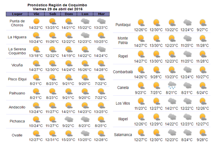 el tiempo en la region de coquimbo meteored