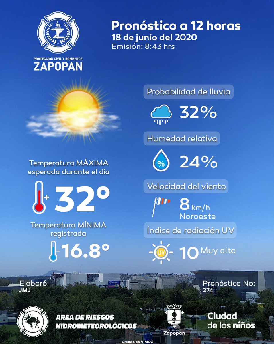 pcybomberoszapopan na twitteru clima la temperatura minima esta manana registrada en el municipio oscilo entre los 16 8 c y 19 7 c se espera predominen condiciones de cielo con nubes dispersas ambiente caluroso por