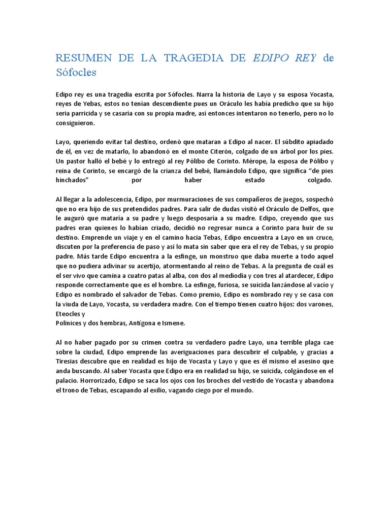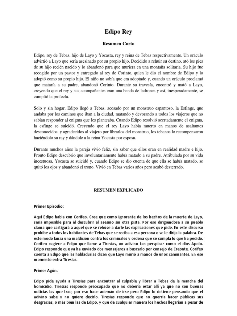 edipo rey resumen sobre la obra docsity