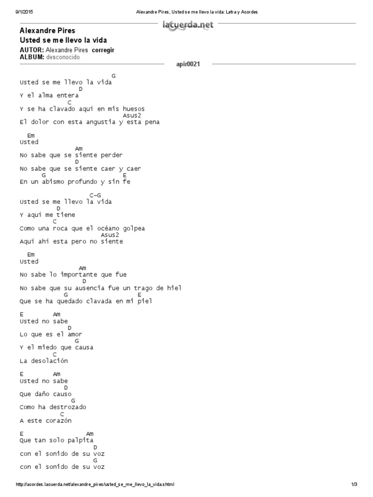 alexandre pires usted se me llevo la vida letra y acordes ocio entretenimiento general