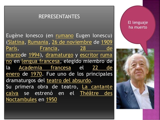 26 de noviembre de 1909 nace el dramaturgo y escritor frances de origen rumano eugene ionesco imer