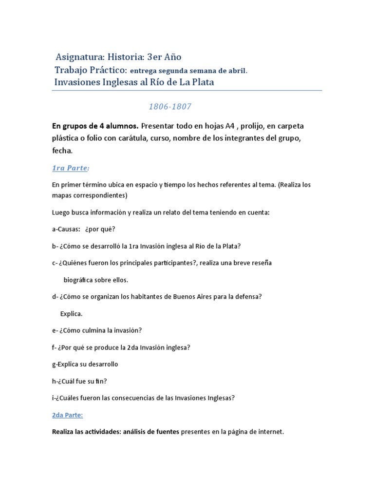 actividades invasiones inglesas 1806 1807