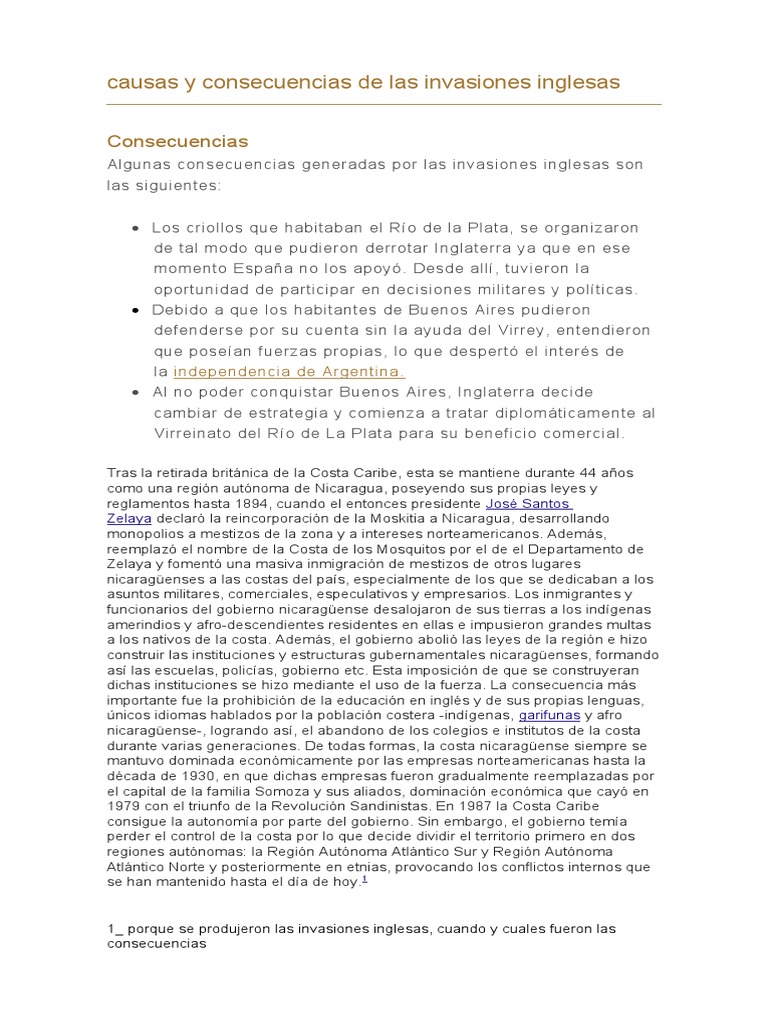 causas y consecuencias de las invasiones inglesas pdf nicaragua espana