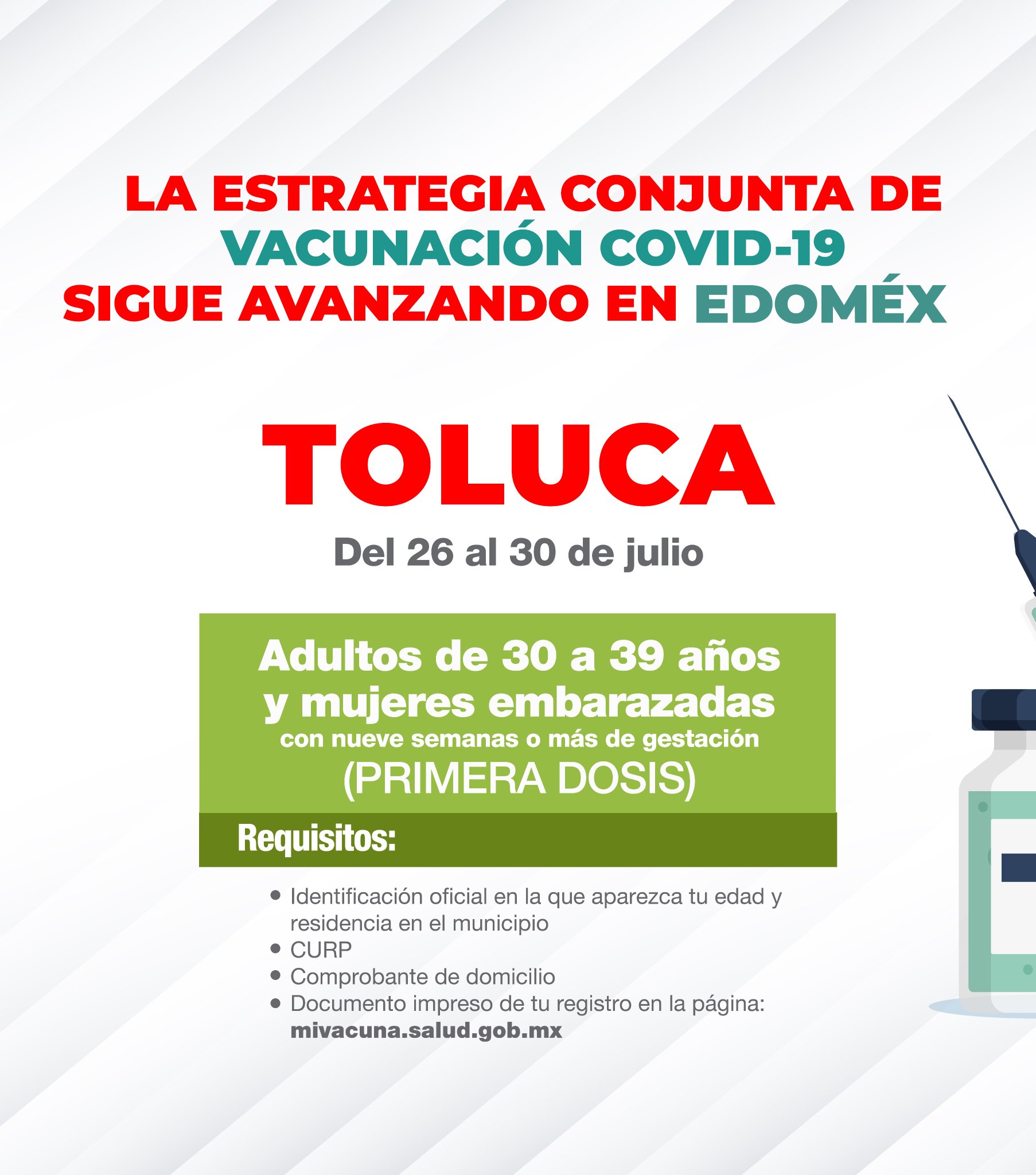 gobierno del estado de mexico on twitter la estrategiadevacunacion avanza en el edomex hasta el 30 de julio estaremos aplicando la primera dosis de la vacuna a los adultos de 30 a