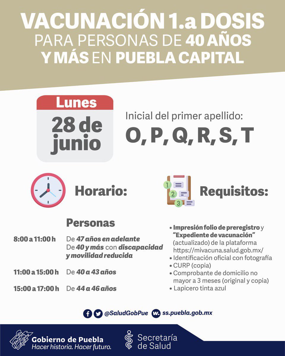 secretaria de salud puebla hoy inicia la aplicacion de la 饾棪饾棙饾棜饾棬饾棥饾棗饾棓 饾棗饾棦饾棪饾棞饾棪 de la vacuna para prevenir la covid19 a personas mayores de 60 anos residentes del municipio de 饾棪饾棶饾椈 饾棓饾椈饾棻饾椏饾棽 饾榾
