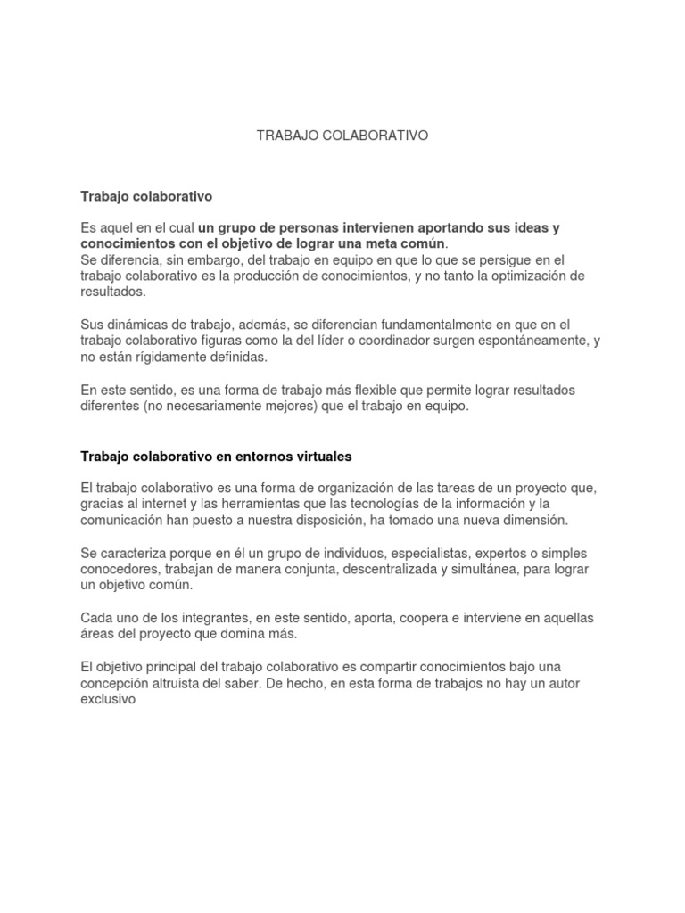 definicion de trabajo colaborativo docx definicion de trabajo colaborativo el aprendizaje en ambientes colaborativos o cooperativos se basa en el course hero