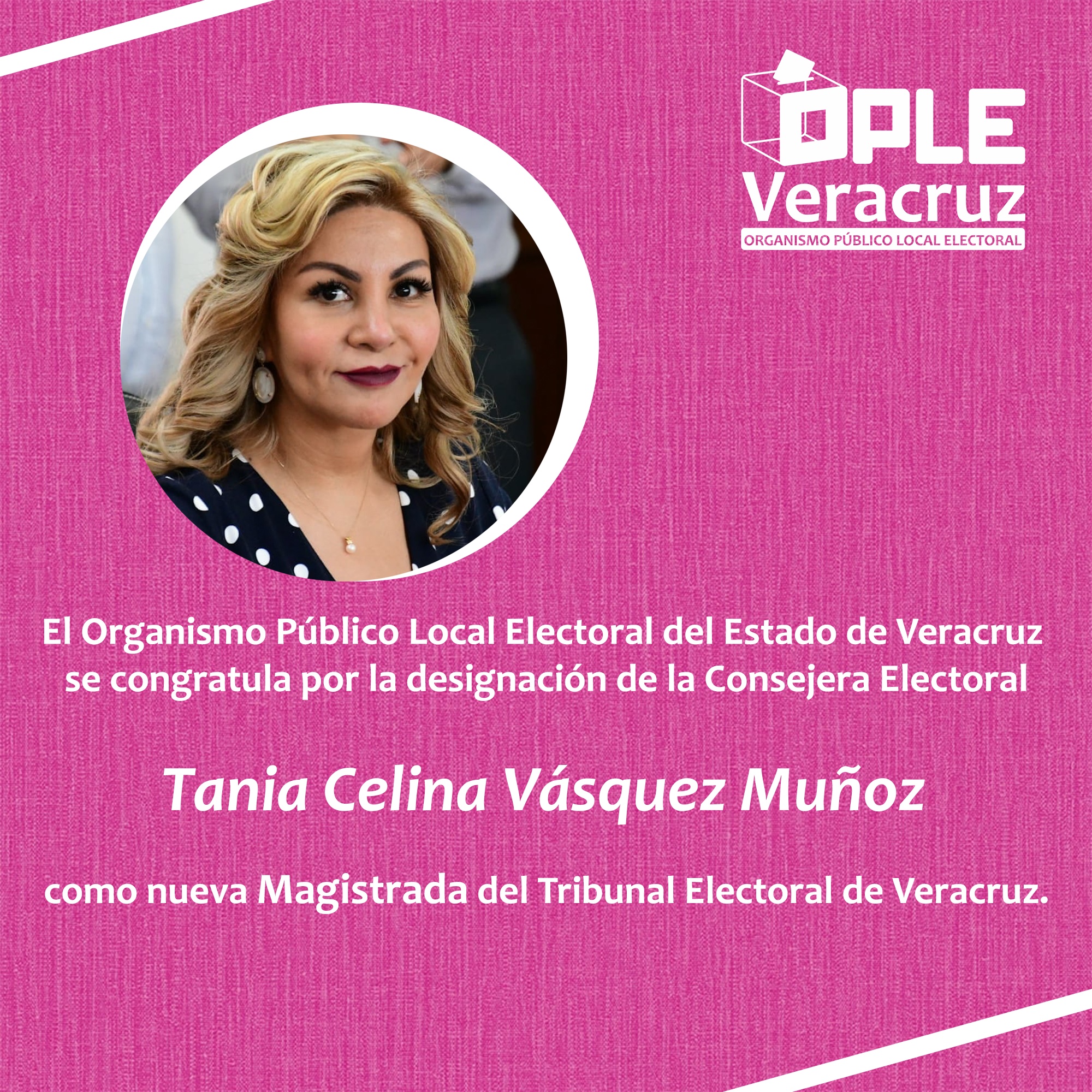 ople veracruz on twitter el ople veracruz se congratula por la designacion de la consejera electoral tania celina vasquez munoz como nueva magistrada del tribunal electoral de veracruz https t co q9tlkfvnkp