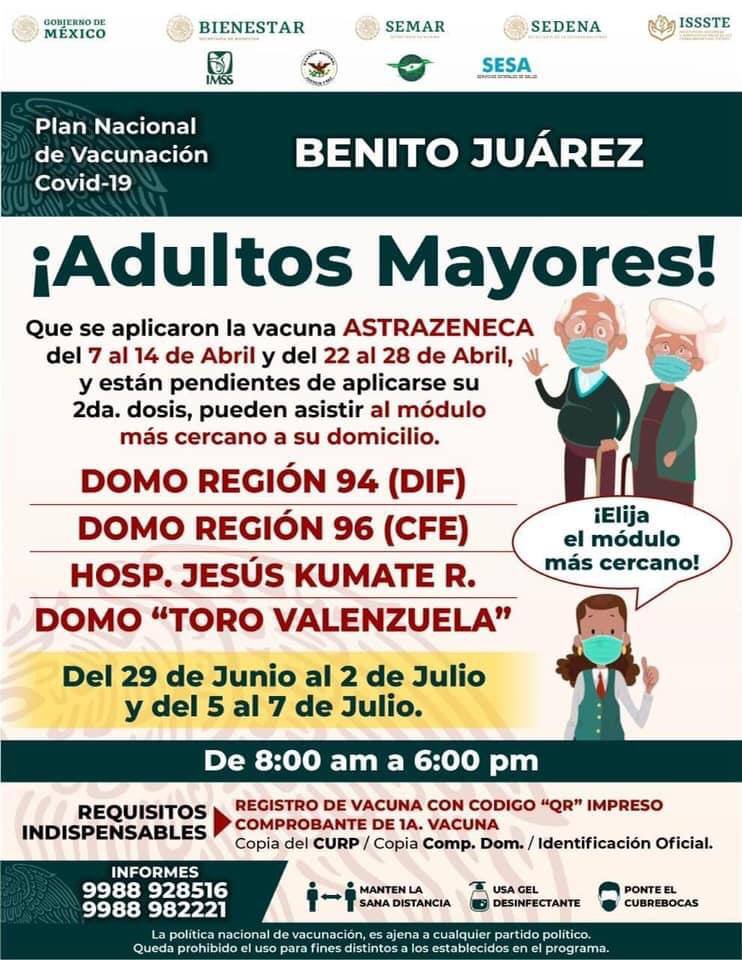 consulta donde te toca inicia este lunes la vacunacion contra covid 19 para adultos mayores de 60 anos en solidaridad la pancarta de quintana roo