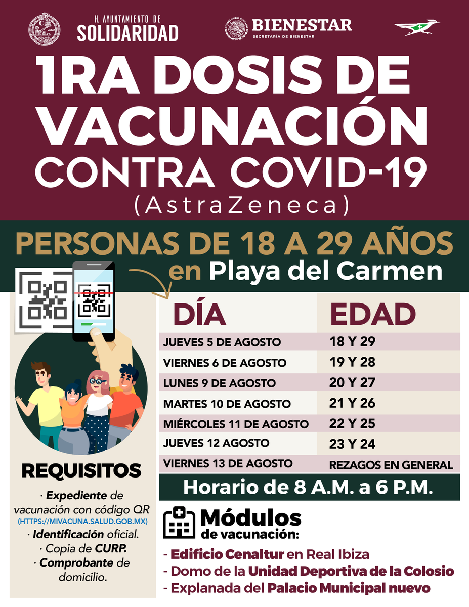 ayuntamiento de solidaridad on twitter si eres mayor de 18 anos te compartimos la informacion sobre la 1radosis de la vacuna astrazeneca contra la covid19 vacunate no lo dejes pasar yomecuidoparacuidarte playadelcarmen