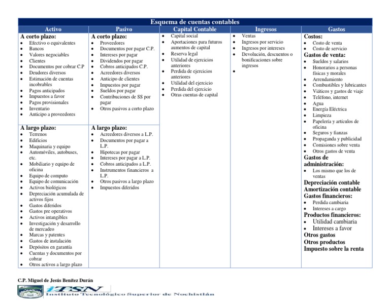 cuentas contables lista con definiciones usos y clasificacion ensamble de ideas